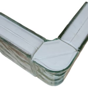 Γωνιακό υαλότουβλο σύννεφο άχρωμο, για καθαρά τελειώματα και σωστή δόμηση σε γωνίες κατασκευών υαλότουβλων.
