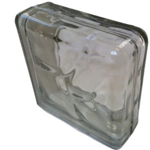 Υαλότουβλο διάφανο χωρίς σχέδιο, άχρωμο, ιδανικό για χώρους που απαιτούν φυσικό φωτισμό, καθαρή αισθητική και αντοχή στον χρόνο.