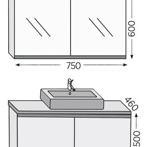 Ο λευκός νιπτήρας από πορσελάνη Royal Bath προσφέρει διαχρονική αισθητική και ποιότητα, ολοκληρώνοντας τη σύνθεση, ενώ η επικάλυψη τύπου COMPACT ενισχύει την αντοχή του επίπλου στην υγρασία και τη φθορά. Ο καθρέφτης-ντουλάπι με εσωτερικό ράφι προσθέτει επιπλέον αποθηκευτικό χώρο χωρίς να θυσιάζει την κομψότητα.