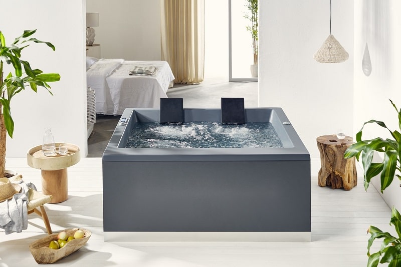 Αναβαθμίστε τον εξωτερικό σας χώρο με την κομψή μίνι πισίνα spa Miami, ιδανική για 2 άτομα, από την Acrilan.