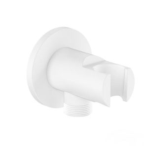 Eπίτοιχη παροχή νερού με στήριγμα για τηλέφωνο ντους 1/2″  στρόγγυλη σε white matt , από την σειρά Aqua round της Roca.