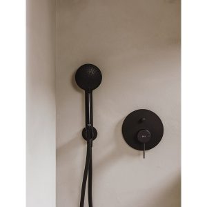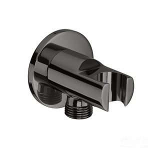 Eπίτοιχη παροχή νερού με στήριγμα για τηλέφωνο ντους 1/2″  στρόγγυλη σε black titanium , από την σειρά Aqua round της Roca.