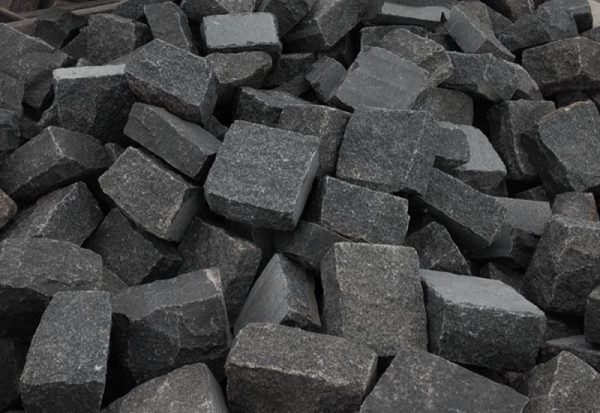 Παράγονται από φυσικό γρανίτη μαύρο δια της θραύσης τεμαχίων με ειδικές πρέσες πιέσεως. Όλες οι πλευρές τους είναι σπασμένες με την πρέσα.