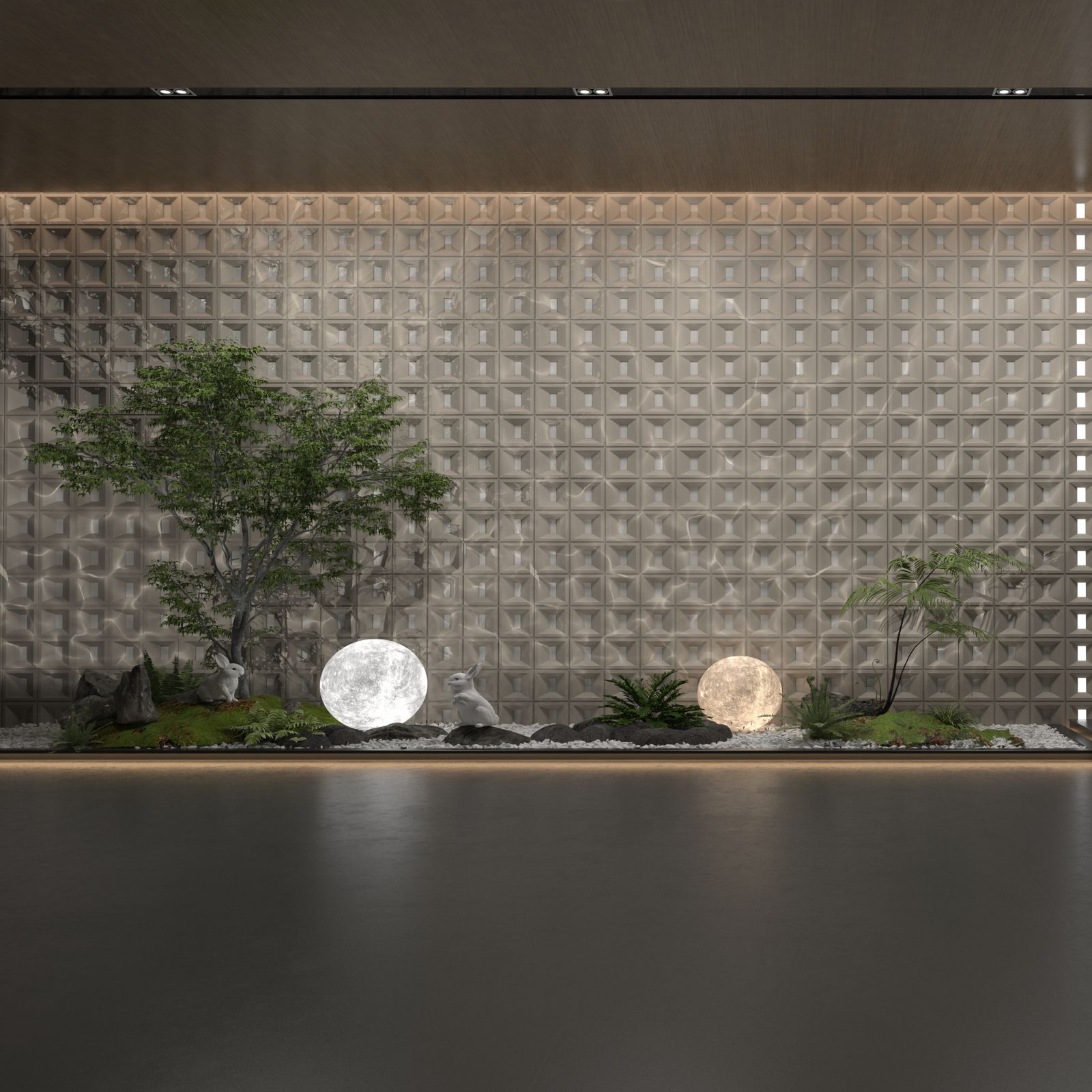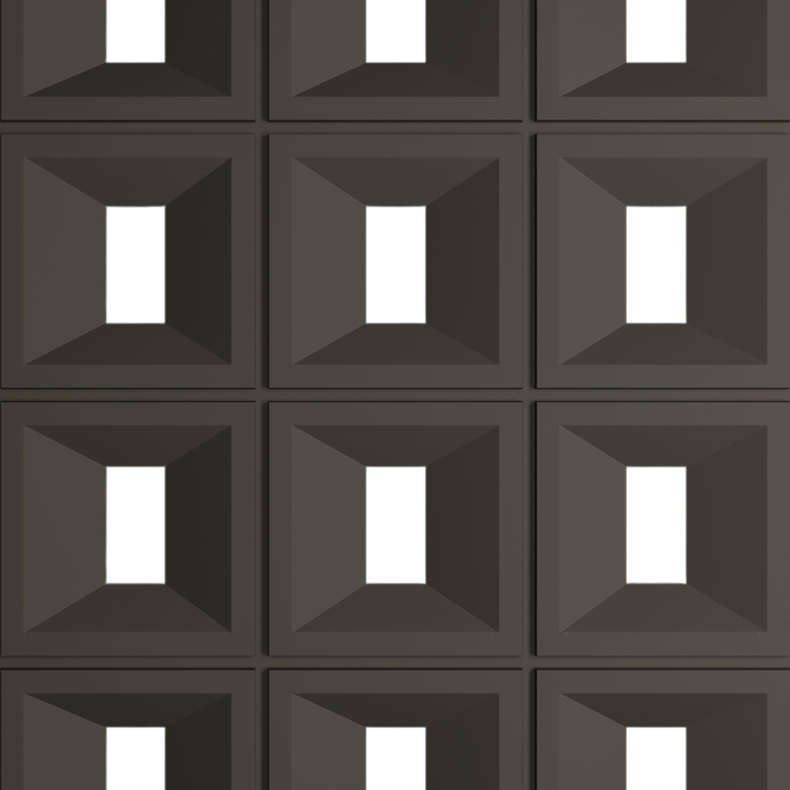 Η τρισδιάστατη επιφάνειά του σχηματίζει συμμετρικές ορθογώνιες κόγχες με επιμήκη εσωτερικό άνοιγμα, προσδίδοντας σύγχρονο, minimal και αυστηρά αρχιτεκτονικό χαρακτήρα στον τοίχο.