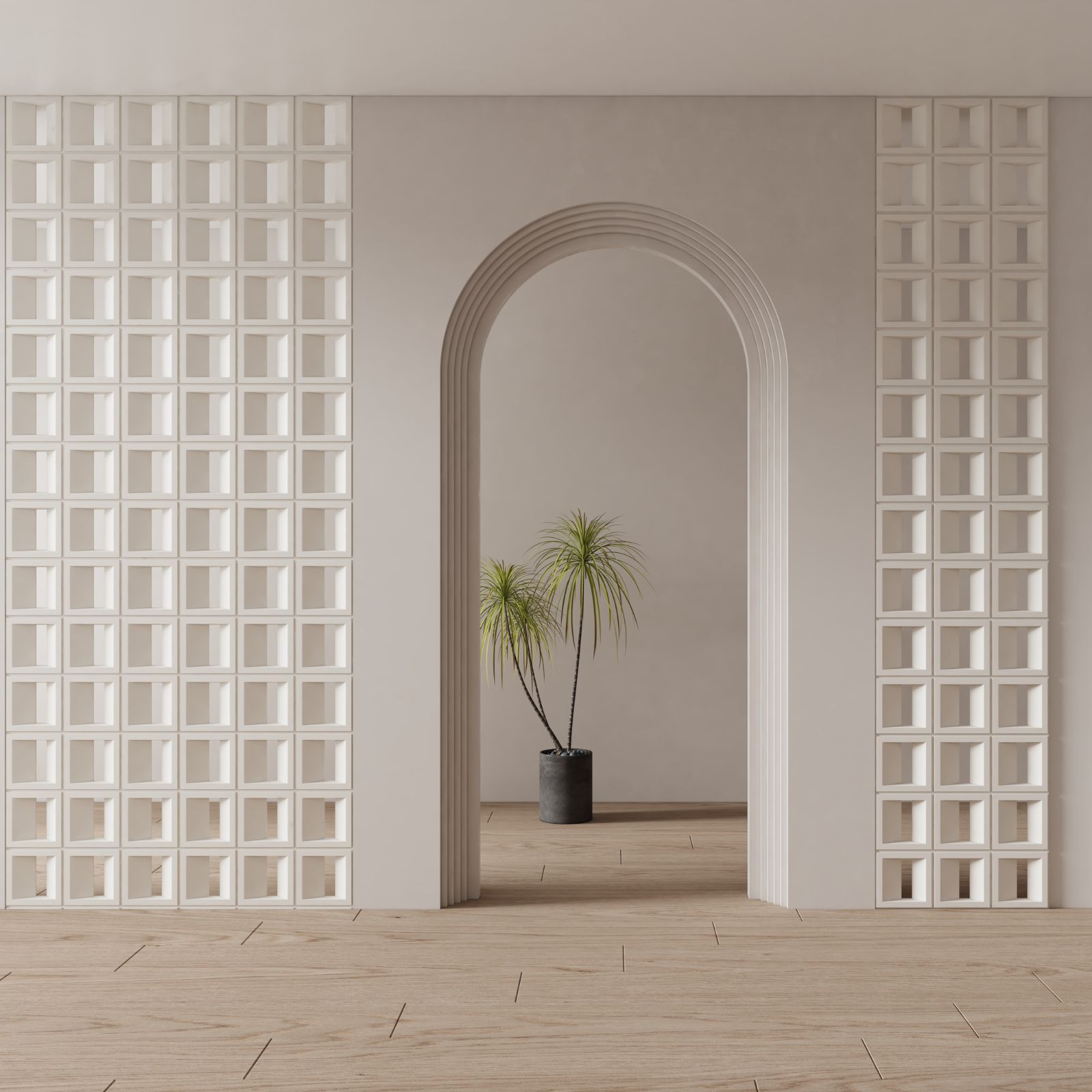 Η τρισδιάστατη επιφάνειά του σχηματίζει συμμετρικές “εσοχές τύπου παραθύρου”, οι οποίες αναδεικνύουν τις φωτοσκιάσεις και προσδίδουν σύγχρονο, minimal χαρακτήρα στον τοίχο.