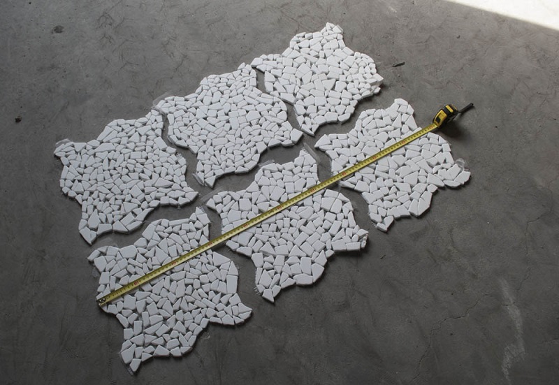 Αποτελείται από αντίκ κομμάτια διαφόρων διαστάσεων, κολλημένα πάνω σε δίχτυ τα οποία σχηματίζουν ένα πλαίσιο 30,5×30,5cm.