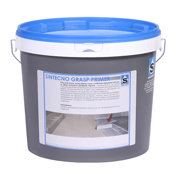 Το SINTECNO GRASP PRIMER είναι αστάρι ενός συστατικού, βάσης νερού, με συνθετικές ακρυλικές ρητίνες και ειδικά επιλεγμένα χαλαζιακά αδρανή, σχεδιασμένο για να βελτιώνει την πρόσφυση σε δύσκολες ή λείες επιφάνειες.