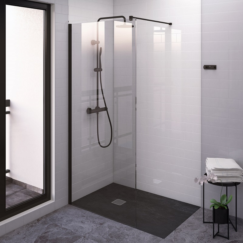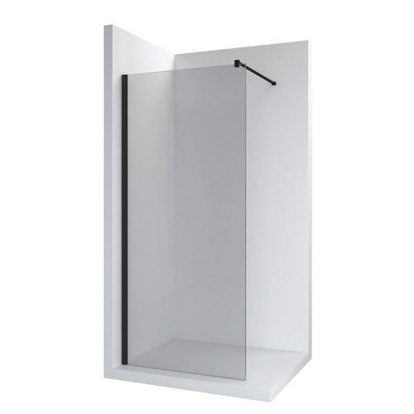 Διαχωριστικό κρύσταλλο ντουζιέρας σταθερό πάχους 6χιλ. με κάθετη αντιρίδα DF με προφίλ μαύρο ματ, από την σειρά District της Roca.