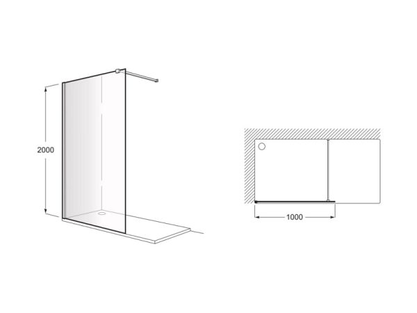 Διαχωριστικό κρύσταλλο ντουζιέρας Roca District 100cm Ø6 mm σταθερό με κάθετη αντιρίδα