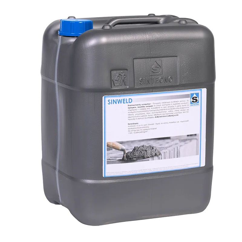 Το SINWELD είναι πολυμερές γαλάκτωμα συνθετικών ρητινών, σχεδιασμένο για χρήση ως πρόσμικτο βελτίωσης σε τσιμεντοκονιάματα και συμβατικά κονιάματα, επιχρίσματα και σοβάδες. Προσδίδει ευκαμψία, αυξημένη μηχανική αντοχή και βελτιωμένη πρόσφυση, ειδικά σε συστήματα στεγανοποίησης.