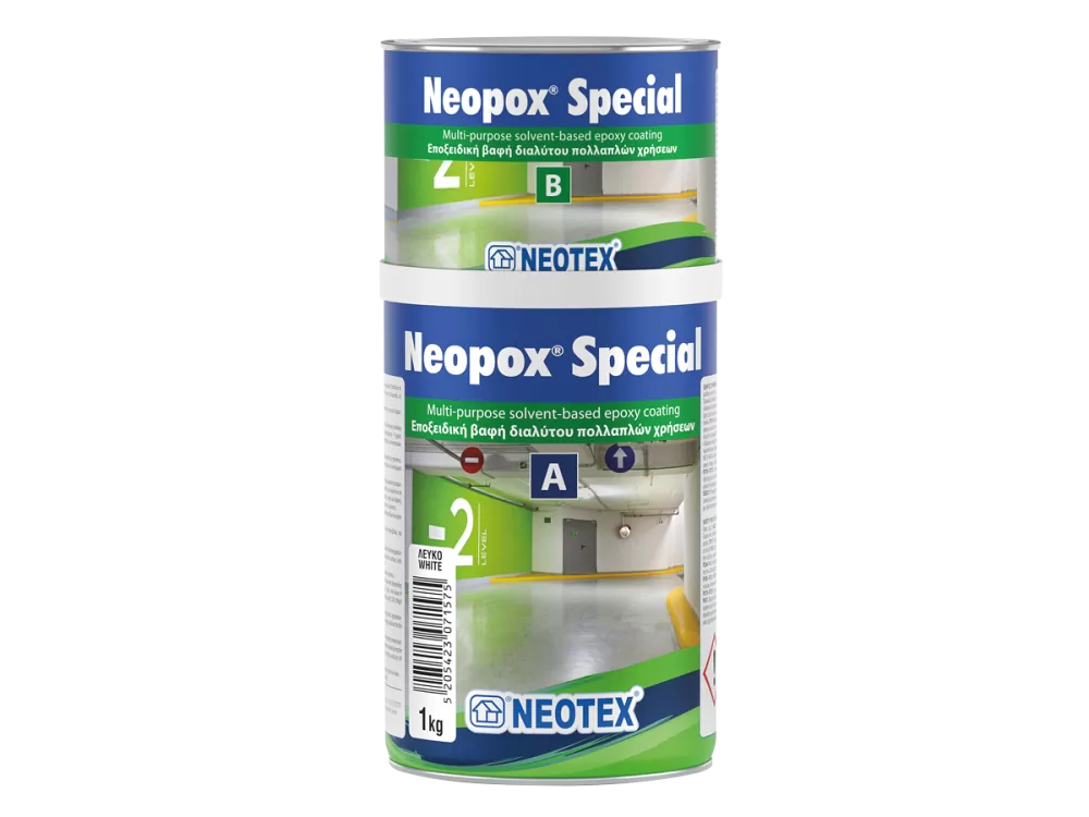 Εποξειδική βαφή διαλύτου 2 συστατικών Α+Β, Neopox Special Λευκό 1Kg 9003 – Neotex
