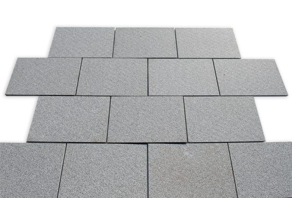 Ο γρανίτης γκρι φλογισμένος είναι ένα κλασικό, διαχρονικό σκληρό με αντιολισθητική επιφάνεια υλικό σε χρώμα γκρι με λεπτά λευκά στίγματα. Η κάτω πλευρά και οι τέσσερις περιμετρικές πλευρές είναι μηχανικά κομμένες και η επάνω φλογισμένη για να μην γλιστράει.