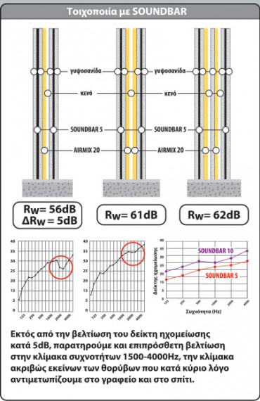 Τα SOUNDBAR ενισχύουν την ηχομονωτική αξία ελαφρών δομικών στοιχείων, και ιδιαίτερα των κατασκευών γυψοσανίδας.
