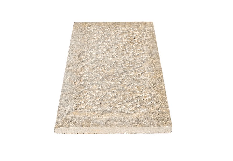 Πρόκειται για φυσικό μαύρο ασβεστόλιθο, με τις τέσσερις περιμετρικές πλευρές κομμένες με μηχάνημα και την επάνω πλευρά σε φυσική μορφή.