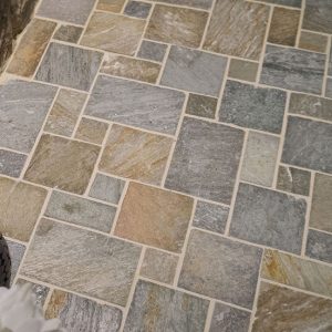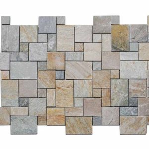 Φυσική πέτρα από σχιστόλιθο Καβάλας, εξορυσσόμενη στους πρόποδες του ιστορικού Παγγαίου, εκεί όπου βρισκόταν ο χρυσός του Φιλίππου Β’. Ένα σκληρό και ανθεκτικό υλικό, με αντιολισθητική επιφάνεια, χαμηλή αποσάθρωση και υψηλή αντοχή στον χρόνο και στον παγετό.