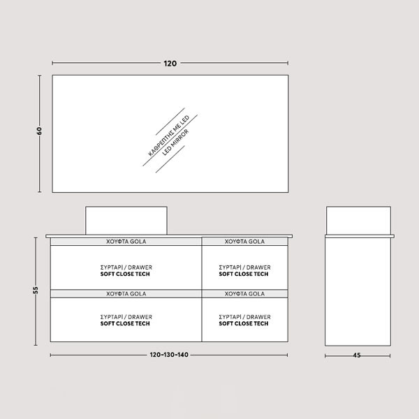 Κάτω μέρος επίπλου μπάνιου 140cm Top 55 Α / The One Savvo