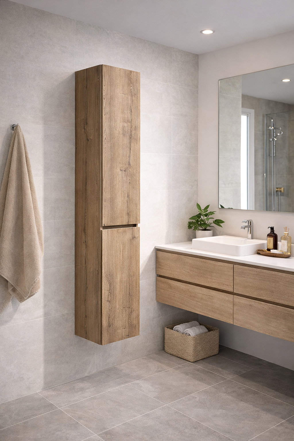 Η κρεμαστή στήλη μπάνιου CO 30 αποτελεί λειτουργική λύση κάθετης αποθήκευσης, ιδανική για μπάνια με περιορισμένο διαθέσιμο χώρο. Η κατασκευή της γίνεται από ανθυγρή μελαμίνη, κατάλληλη για χρήση σε περιβάλλοντα με αυξημένη υγρασία.