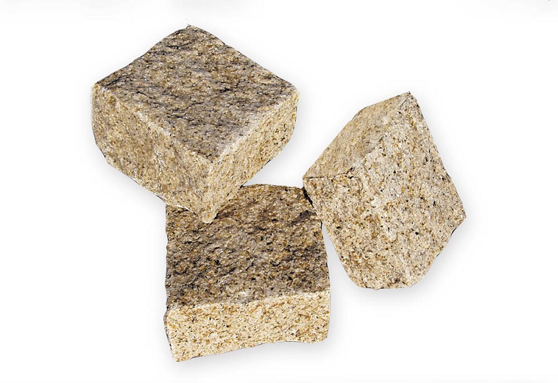 Παράγονται από φυσικό γρανίτη μπεζ δια της θραύσης τεμαχίων με ειδικές πρέσες πιέσεως. Όλες οι πλευρές τους είναι σπασμένες με την πρέσα.
