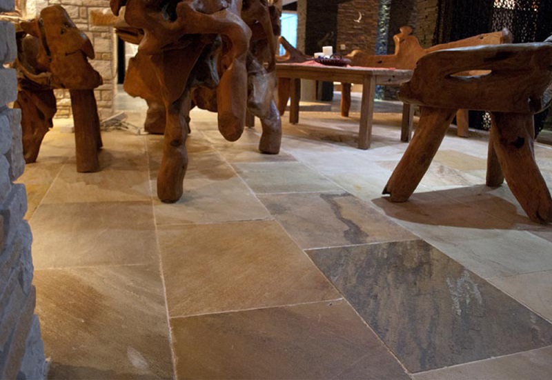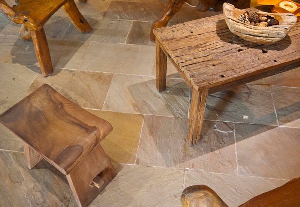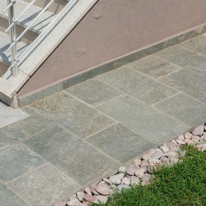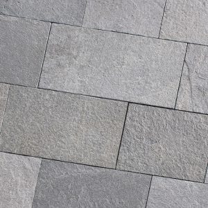 Φυσική πέτρα από σχιστόλιθο Καβάλας, εξορυσσόμενη στους πρόποδες του ιστορικού Παγγαίου, εκεί όπου βρισκόταν ο χρυσός του Φιλίππου Β’. Ένα σκληρό και ανθεκτικό υλικό, με αντιολισθητική επιφάνεια, χαμηλή αποσάθρωση και υψηλή αντοχή στον χρόνο και στον παγετό.