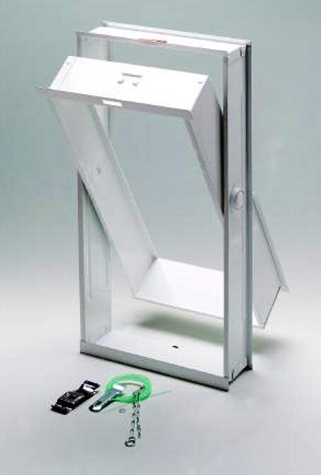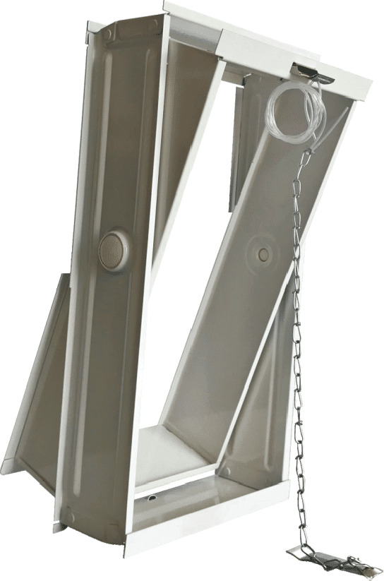 Το πλαίσιο ανοίγει με ανάκλιση, με άξονα στο κέντρο του ύψους, μέσω αλυσίδας προσαρμοσμένης σε πλαστικό κορδόνι.