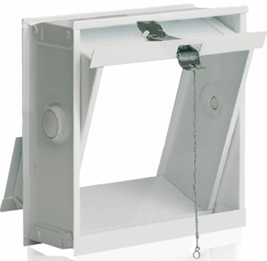 Μεταλλικό πλαίσιο παραθύρου για ένα υαλότουβλο 24×24 cm, κατασκευασμένο από γαλβανισμένη λαμαρίνα με ηλεκτροστατική βαφή σε λευκό χρώμα.