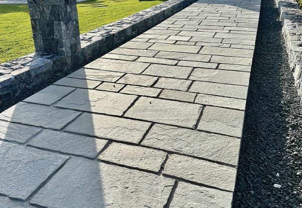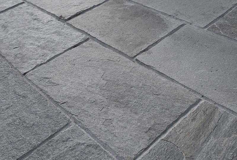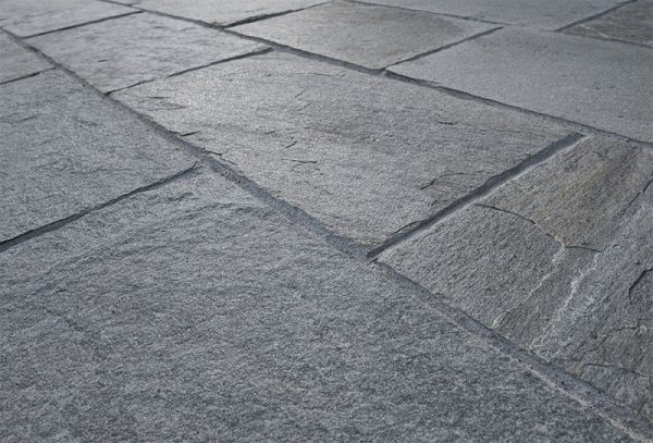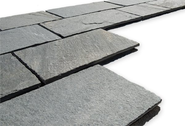 Φυσική πέτρα από σχιστόλιθο Καβάλας, εξορυσσόμενη στους πρόποδες του ιστορικού Παγγαίου, εκεί όπου βρισκόταν ο χρυσός του Φιλίππου Β’. Ένα σκληρό και ανθεκτικό υλικό, με αντιολισθητική επιφάνεια, χαμηλή αποσάθρωση και υψηλή αντοχή στον χρόνο και στον παγετό.