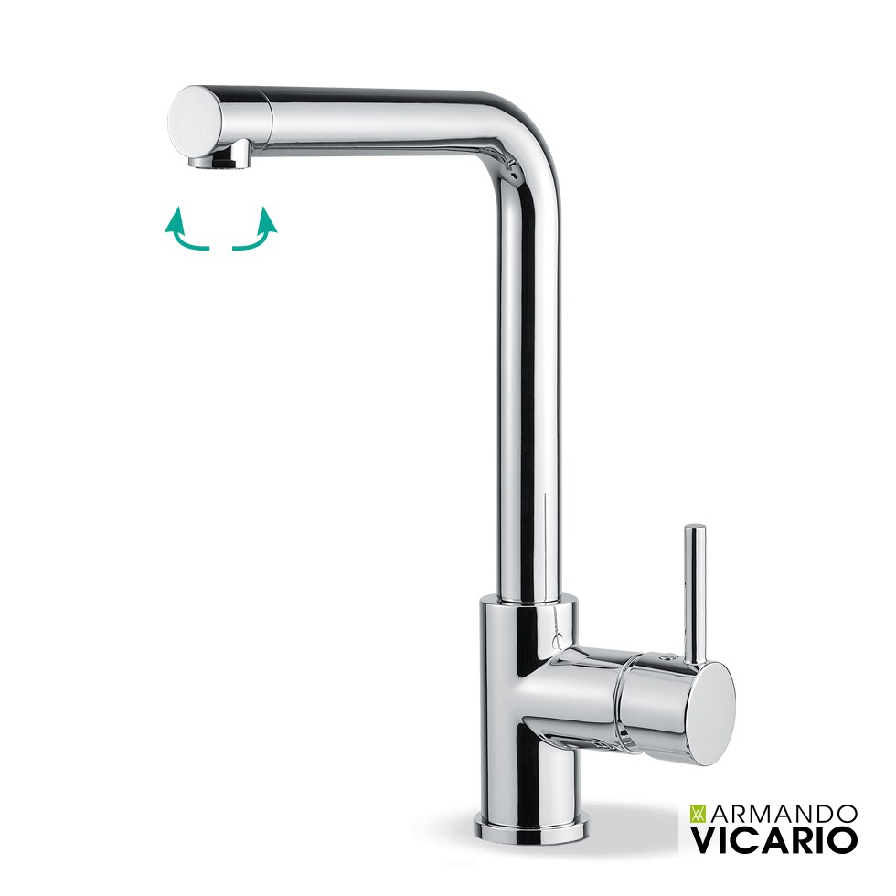Μπαταρία νεροχύτου θερμομικτική Base με υψηλό περιστρεφόμενο ρουξούνι και συρόμενο ντους VICARIO Ιταλίας