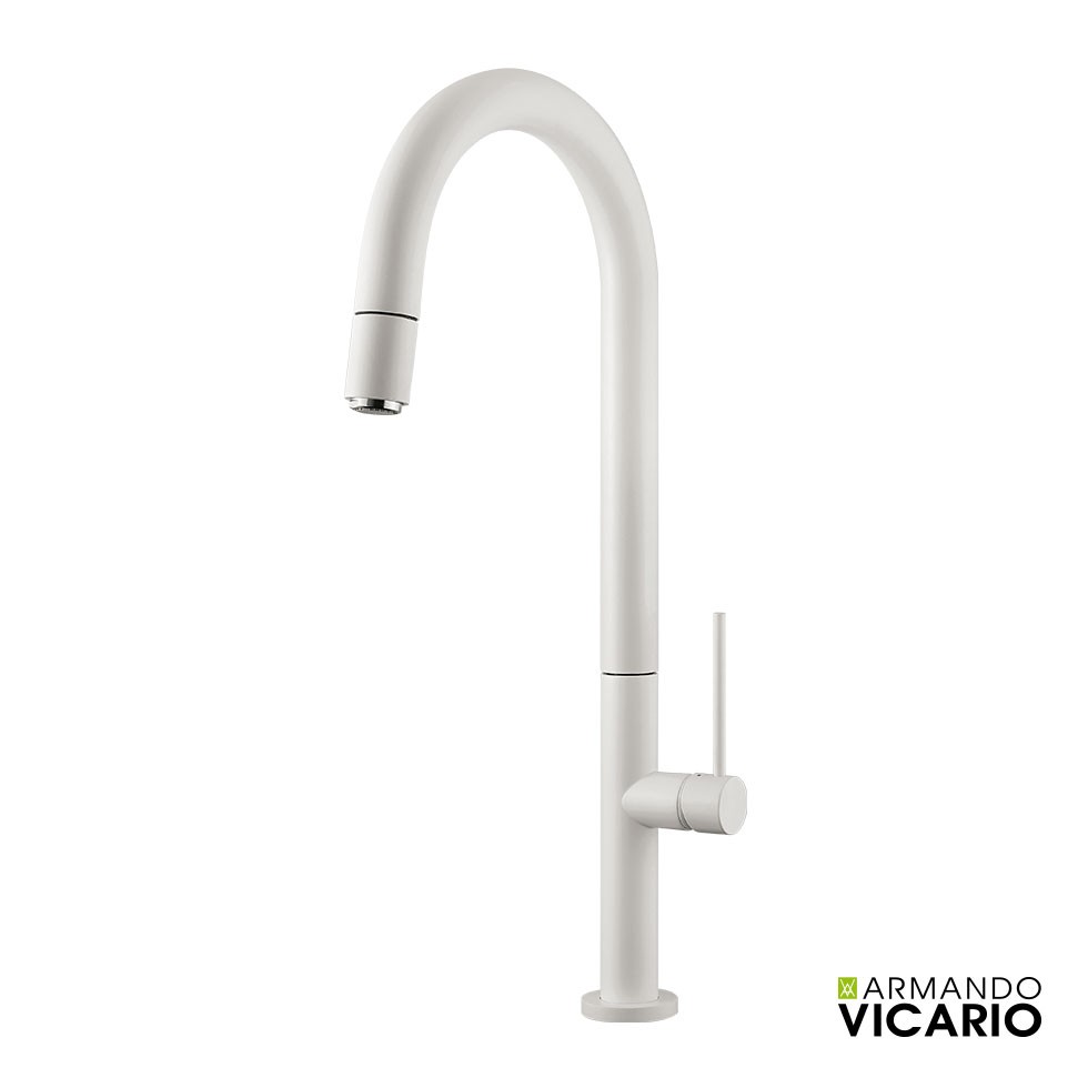 Μπαταρία κουζίνας θερμομικτική TOZO με ψηλό περιστρεφόμενο ρουξούνι και συρόμενο ντους VICARIO Ιταλίας.