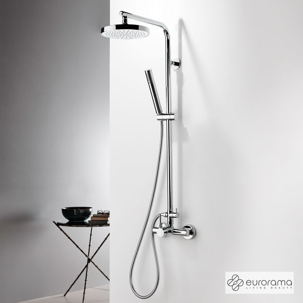 Μπαταρία ντουζιέρας θερμομικτική TONDA 2 εξόδων με κολώνα Φ25 mm σταθερού ύψους 117 cm, ανακλινόμενη κεφαλή Φ20 cm & τηλέφωνο με άθραυστο σπιράλ 1.5m, EURORAMA Ιταλίας
