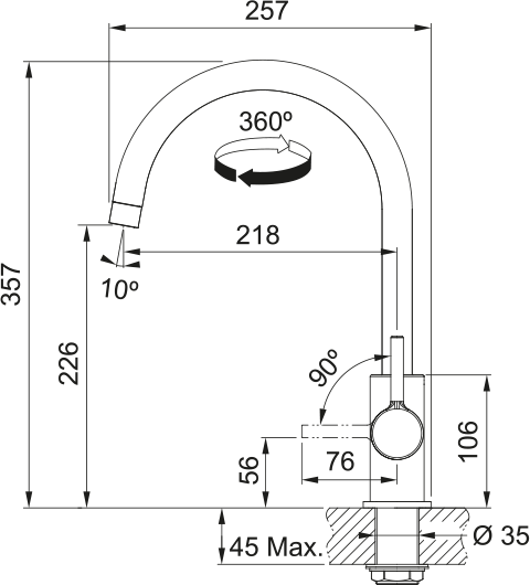 Αναμεικτική μπαταρία κουζίνας Lina XL Standard coffee , με περιστρεφόμενο ρουξούνι.