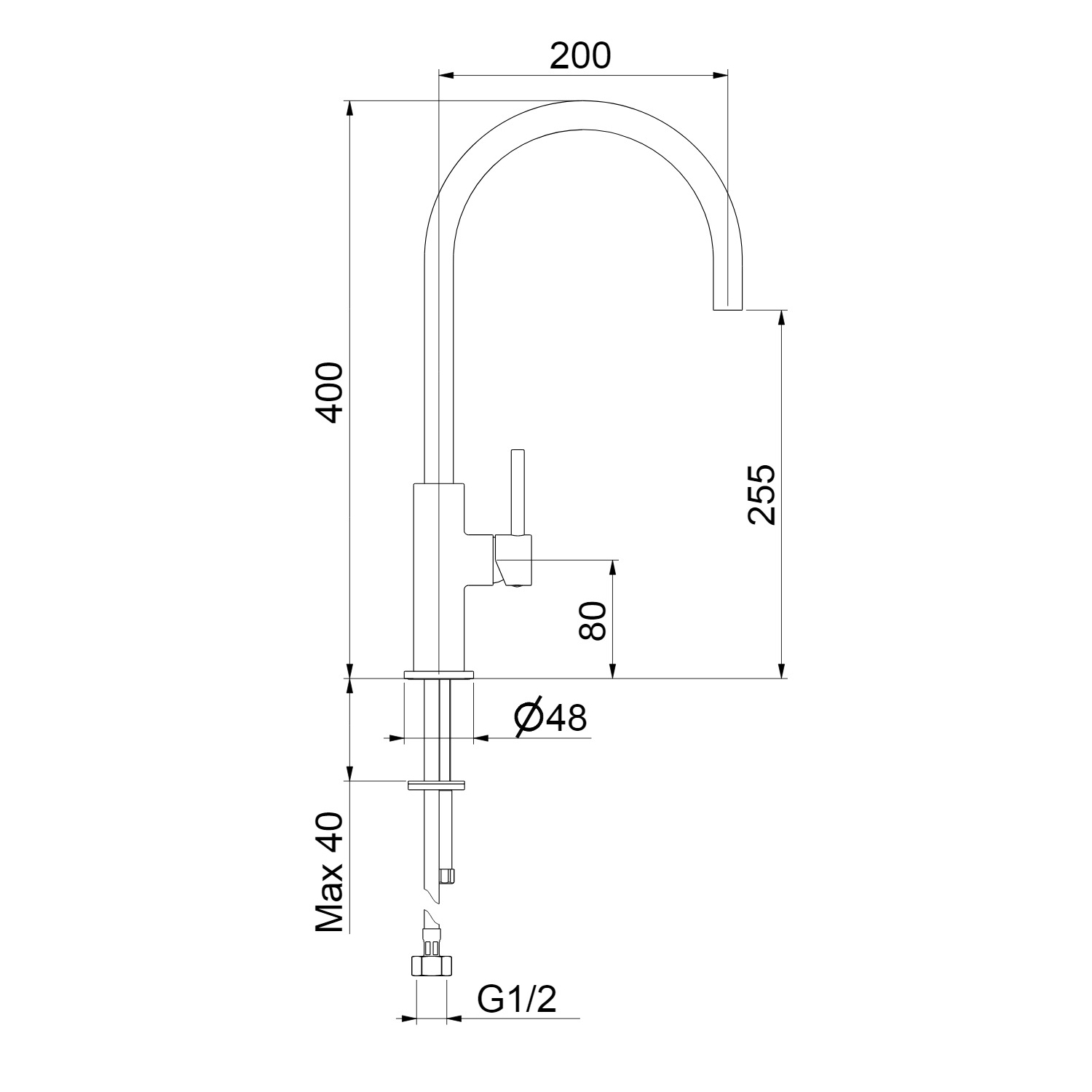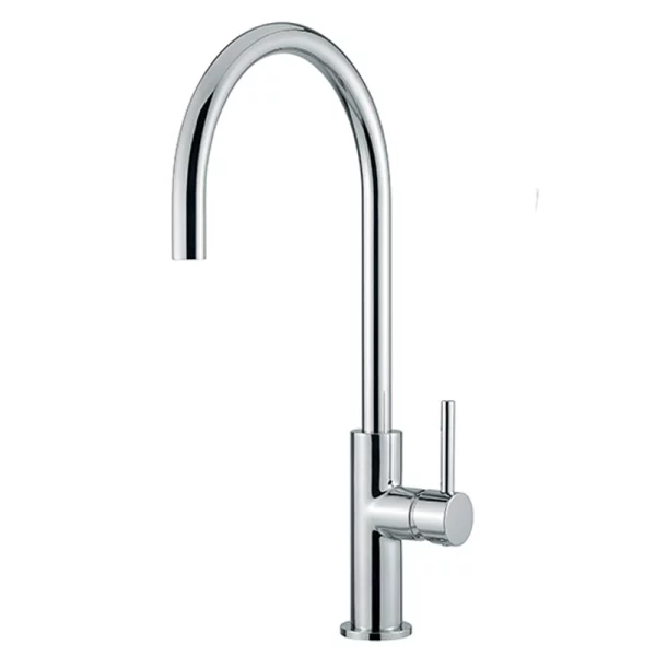 Επικαθήμενη μπαταρία κουζίνας χρωμέ ψηλή με περιστρεφόμενο ρουξούνι και εύκαμπτο σωλήνα σύνδεσης 50 cm 3/8″F, υψηλής ποιότητας και κατασκευής, από την σειρά Venezia της Fiore.