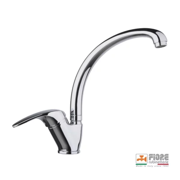 Επικαθήμενη μπαταρία κουζίνας καμπυλωτή χρωμέ με περιστρεφόμενο ρουξούνι και εύκαμπτο σωλήνα 35 1/2”, υψηλής ποιότητας και κατασκευής, από την σειρά Max της Fiore.