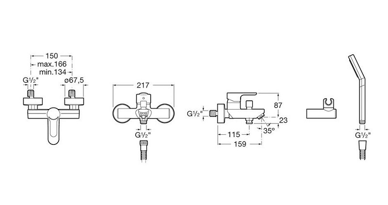 - Ρυθμιζόμενη μπάρα ντους 125 cm για άνεση και ευελιξία