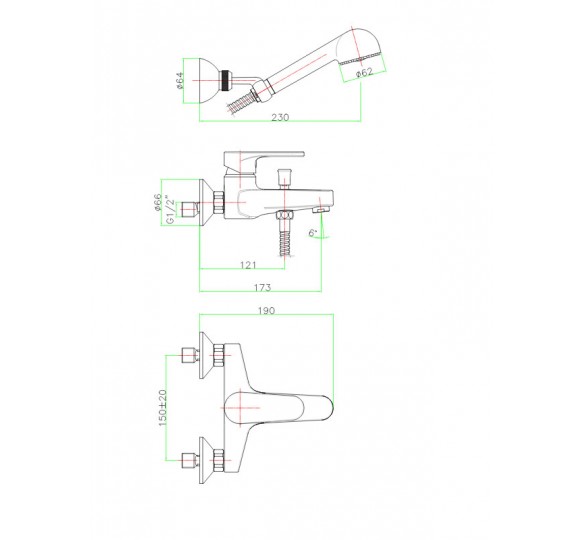 Σετ μπαταρία λουτρού επίτοιχη αναμεικτική με καταιονηστήρα χειρός, από την σειρά Kyma της Fiore.