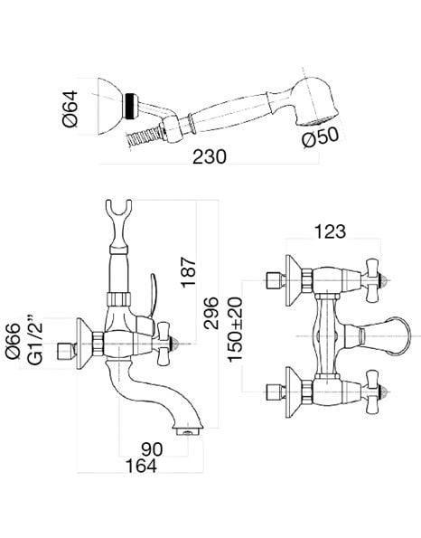 Σετ μπαταρία λουτρού retro επίτοιχη αναμεικτική με καταιονηστήρα χειρός χρωμέ, από την σειρά Margot της Fiore.