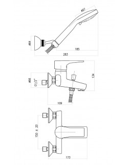 Σετ μπαταρία ντουζ Superlux επίτοιχη με τηλεσκοπική στήλη, κώδωνα Ø200 PVC, ενσωματωμένο εκτροπέα , σπιράλ και ντουζάκι , από την σειρά Xenon της Fiore.