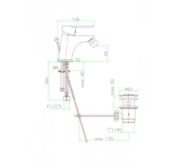 Επικαθήμενη μπαταρία μπιντέ με αυτόματη βαλβίδα νιπτήρος σε 1 1/4 και σπιράλ συνδέσεως μπαταρίας σε 1/2 , από την σειρά Kevon της Fiore.