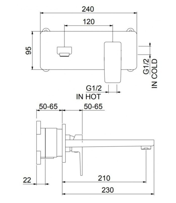 Μπαταρία νιπτήρα εντοιχιζόμενη Fiore Dark 140CR9518