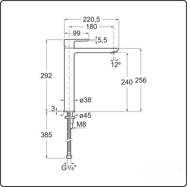 Μπαταρία νιπτήρος Roca ψηλή χρωμέ Cala cold start