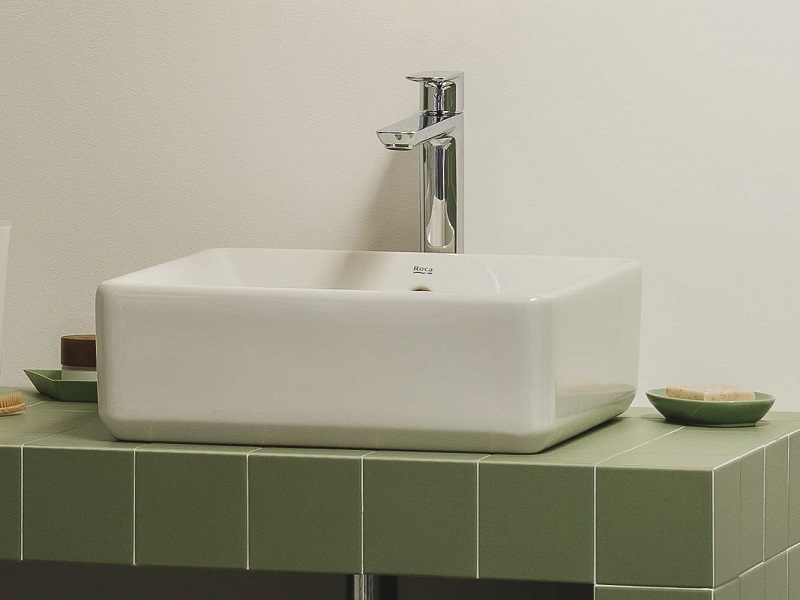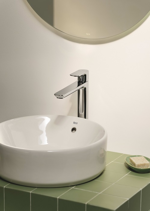 Μπαταρία νιπτήρος επικαθήμενη ψηλή με λείο σώμα χρωμέ υψηλής ποιότητας , από τη σειρά Cala της Roca.