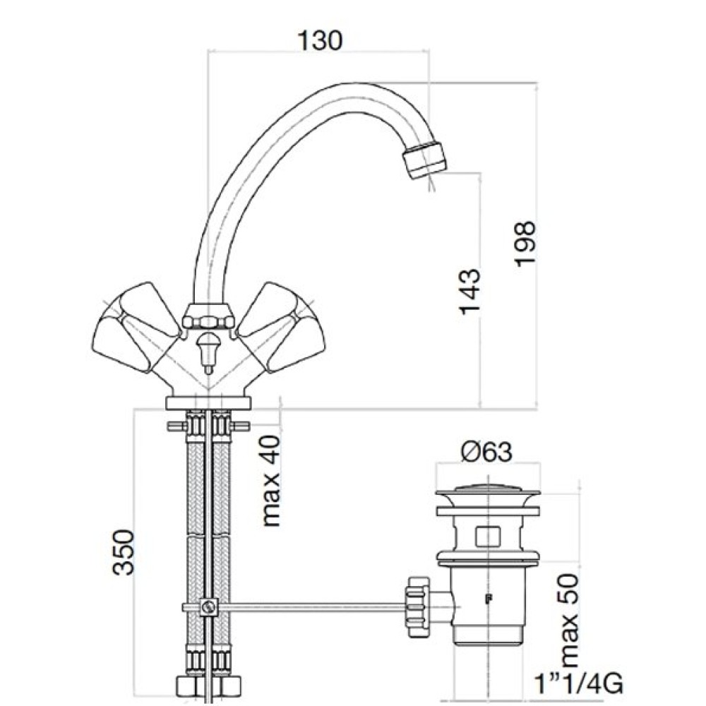 Μπαταρία νιπτήρος Fiore Classic line χρωμέ 14CR0359