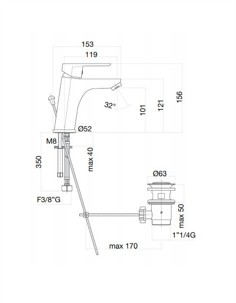 Μπαταρία νιπτήρος Fiore Kyma 75CR6520