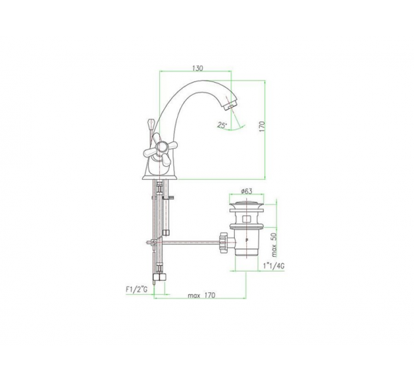 Επικαθήμενη retro μπαταρία νιπτήρος με αυτόματη βαλβίδα 1″1/4 μιας εξόδου bronze με vintage λαβές και εύκαμπτο σωλήνα 35 1/2”, υψηλής ποιότητας και κατασκευής, από την σειρά Margot της Fiore.
