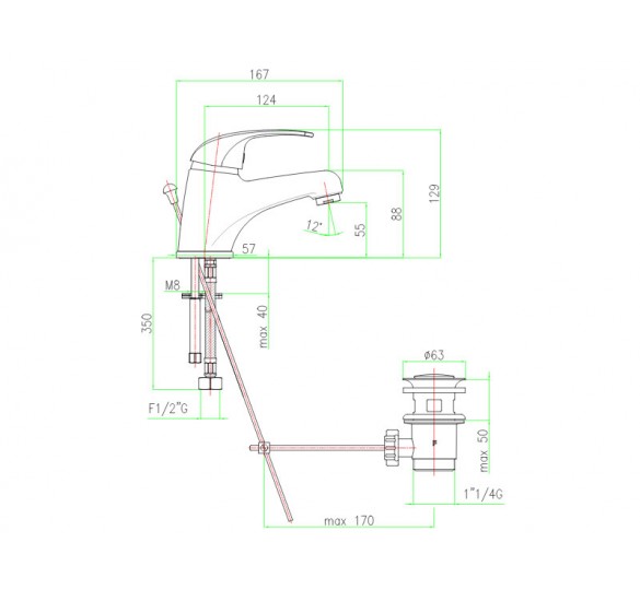 Μπαταρία νιπτήρος επικαθήμενη με αυτόματη βαλβίδα 1 1/4″ μιας εξόδου και εύκαμπτος σωλήνας 35 1/2”F , υψηλής ποιότητας και κατασκευής, από την σειρά Max της Fiore.
