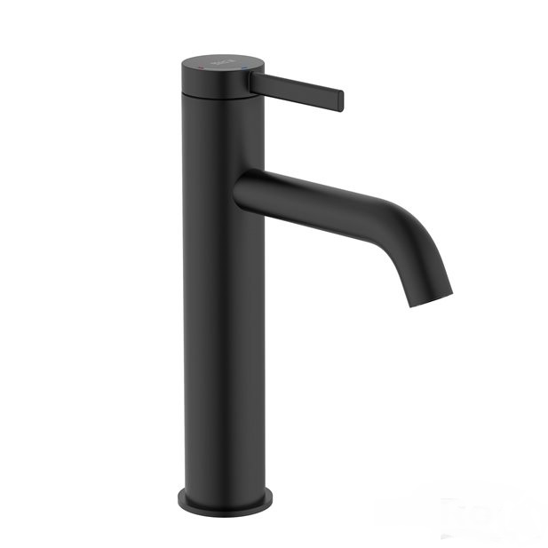 Μπαταρία νιπτήρος επικαθήμενη με λείο σώμα και βαλβίδα click-clack μαύρη ματ μεσαίου ύψους υψηλής ποιότητας , από τη σειρά Cala της Roca.