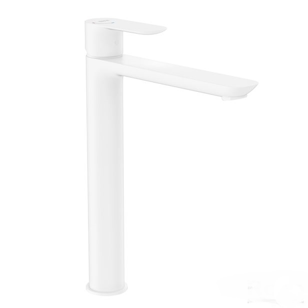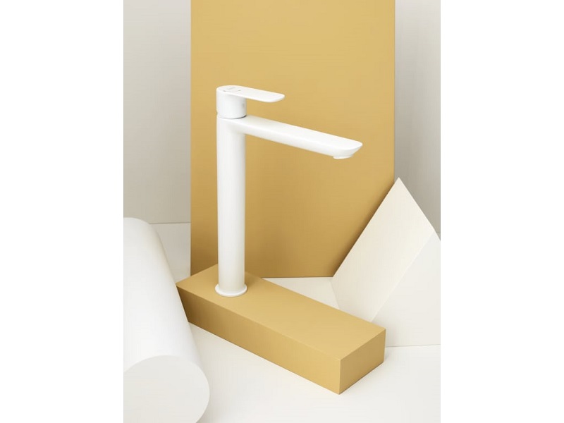 Μπαταρία νιπτήρος επικαθήμενη ψηλή με λείο σώμα λευκή ματ υψηλής ποιότητας , από τη σειρά Cala της Roca.