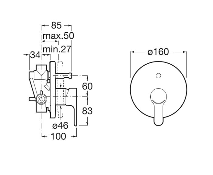 Εντοιχιζόμενη μπαταρία ντους 2 εξόδων στρογγυλή με αυτόματο διανομέα σε χρωμέ φινίρισμα, από την σειρά L20 της Roca.