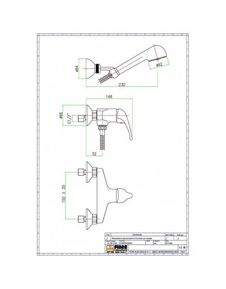 Σετ μπαταρία λουτρού επίτοιχη αναμεικτική με καταιονηστήρα χειρός, από την σειρά Altura Mia της Fiore.