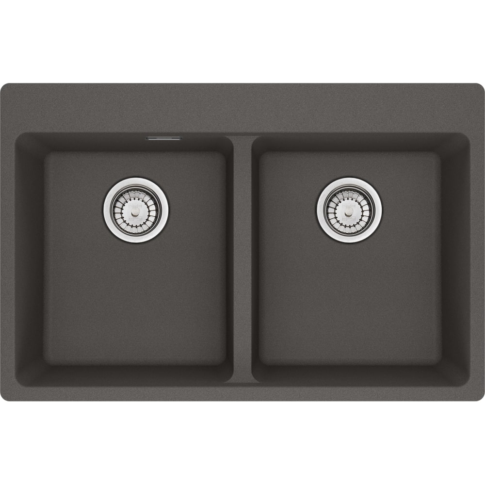 Γρανιτένιος νεροχύτης Centro 620-34-34 FTL 780x500mm, με 2 γούρνες, χωρίς ποδιά, ένθετος, Slate Grey, με απλή βαλβίδα και ελάχιστο μέγεθος ντουλαπιού 80cm.