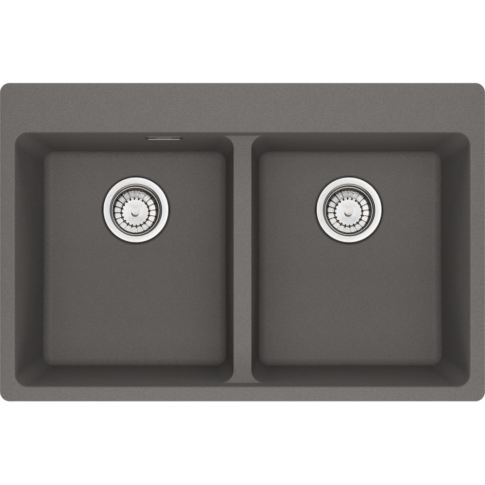 Γρανιτένιος νεροχύτης Centro 620-34-34 FTL 780x500mm, με 2 γούρνες, χωρίς ποδιά, ένθετος, Stone Grey, με απλή βαλβίδα και ελάχιστο μέγεθος ντουλαπιού 80cm.